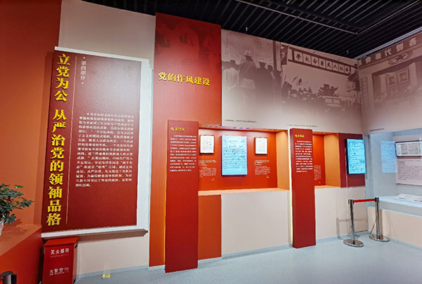 在第四部分“立党为公 从严治党的领袖品格”中,展出了1949年4月30日《中央关于新区宣传教育应以毛泽东、朱德所发布为标准的指示》电文手稿。在指挥解放全中国和筹建新中国的过程中,我们党始终强调党的领导。这封电报体现了党中央始终强调加强党的统一领导,并用党的纲领、路线、方针和政策统一全党的思想和行为,确保全党思想上政治上的高度一致,使全党步调一致地沿着正确的政治方向前进。