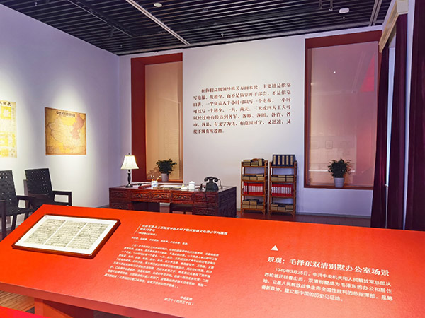 “为新中国奠基”的红色岁月让人刻骨铭心。展览设置的35处“电文导读”,记录了电文背后许多影响着新中国命运的关键历史事件。“双清别墅毛泽东同志办公室”“中共中央办公厅机要处”“北平街头捷报频传”“人民的胜利”等复原历史场景,让观众驻足停留,感受历史厚重的一页。